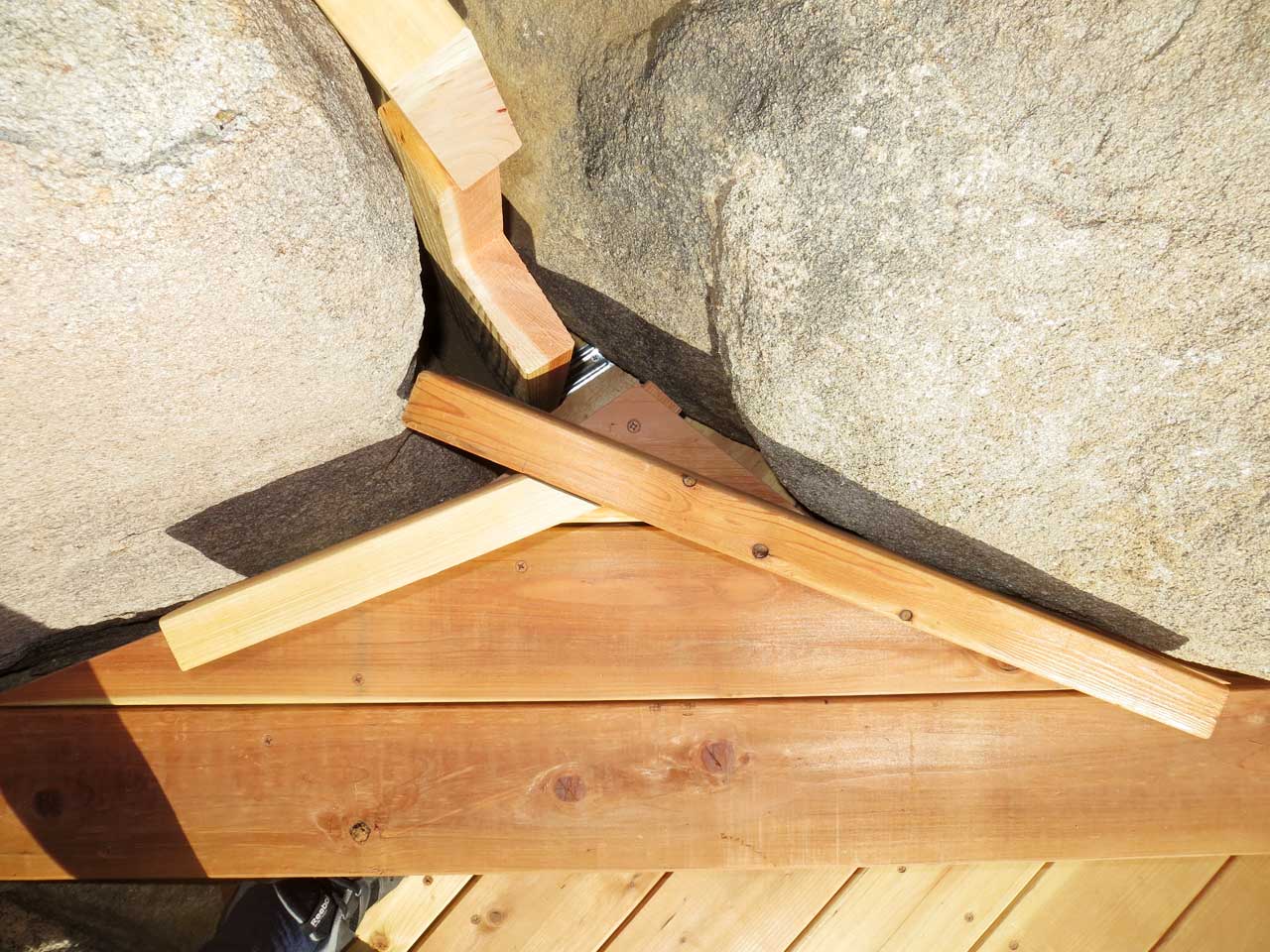 Installing form-fitting steps to turn 90 degrees as it rises from the hillside deck