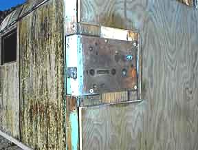 The varnished door and the edge of the screen door with it's pocket back in place