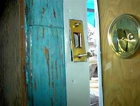 The latch, the deadbolt and the door stop