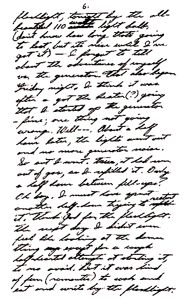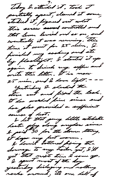 This was a tiny generator that I had picked up at a garage sale — about the size and decibel of a small deranged kitchen blender with a metal jar full of broken glass. |  |