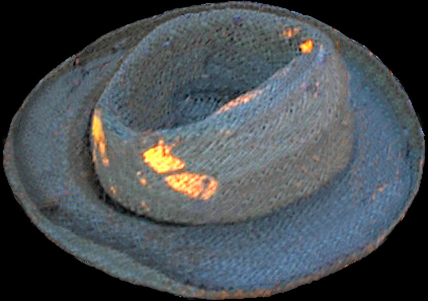 A straw hat formerly trapped under Desert foliage but freed with photoshop diligence in 2001
