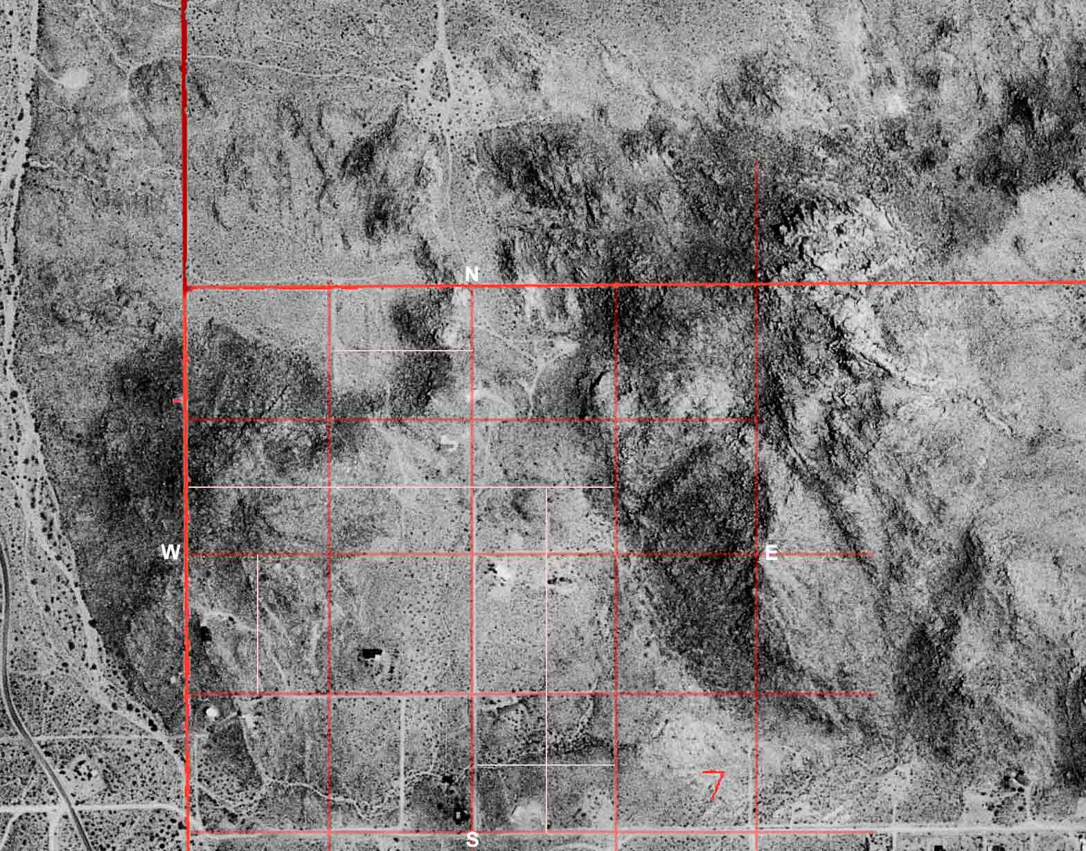 1993 satellite of section 7 NW quadrant Joshua Tree California parcel grid layout