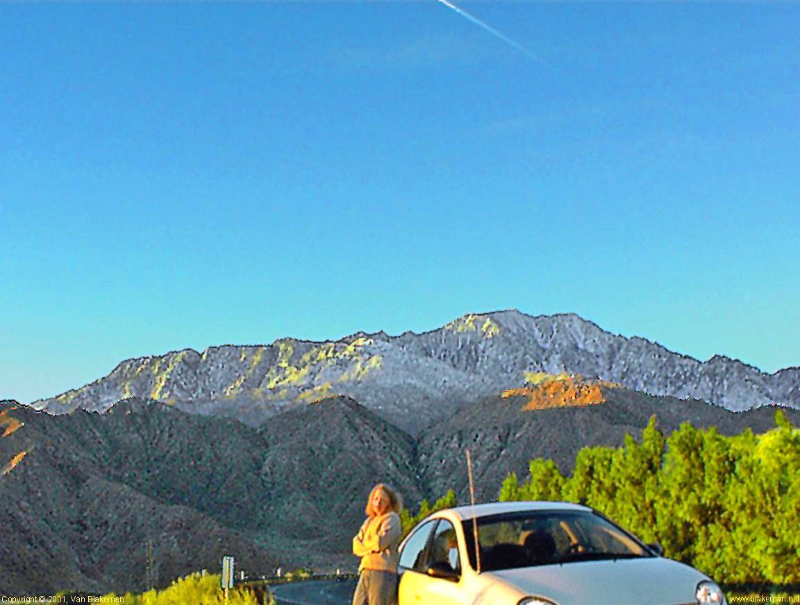 CA-62 with Eileen Blakeman looking away from Mount San Jacinto in 2001 (enhanced)