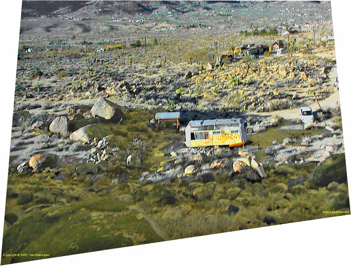 The neighborhood and My land with the trashed trailer near Joshua Tree in 2001