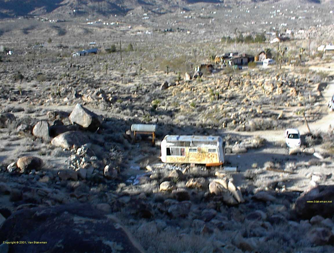 The neighborhood and My land with the trashed trailer near Joshua Tree in 2001