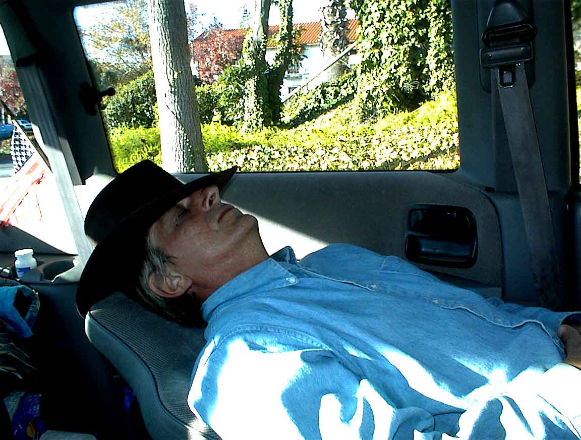 Me napping under my new hat in San Juan Capistrano, CA