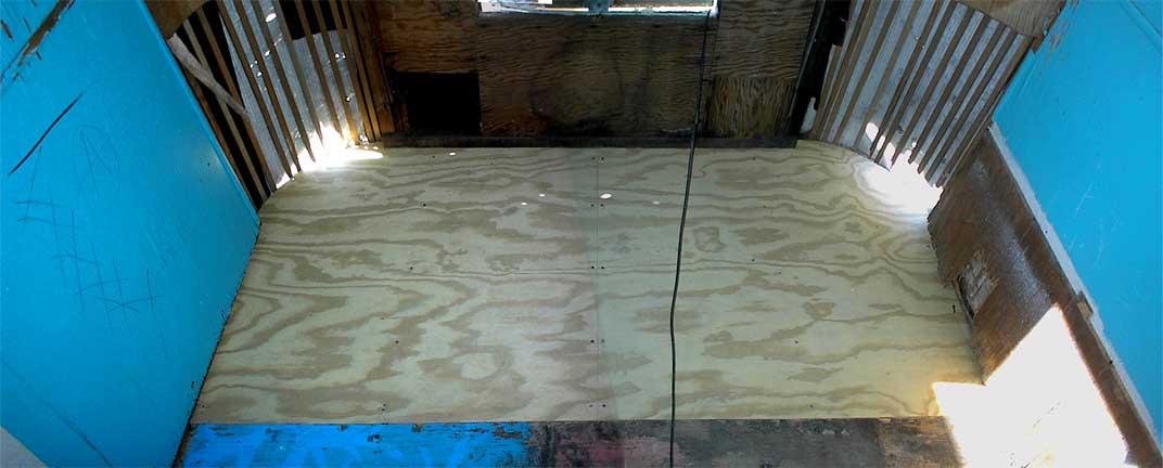 New 3/4 inch plywood floor in our Joshua Tree trailer home in 2002