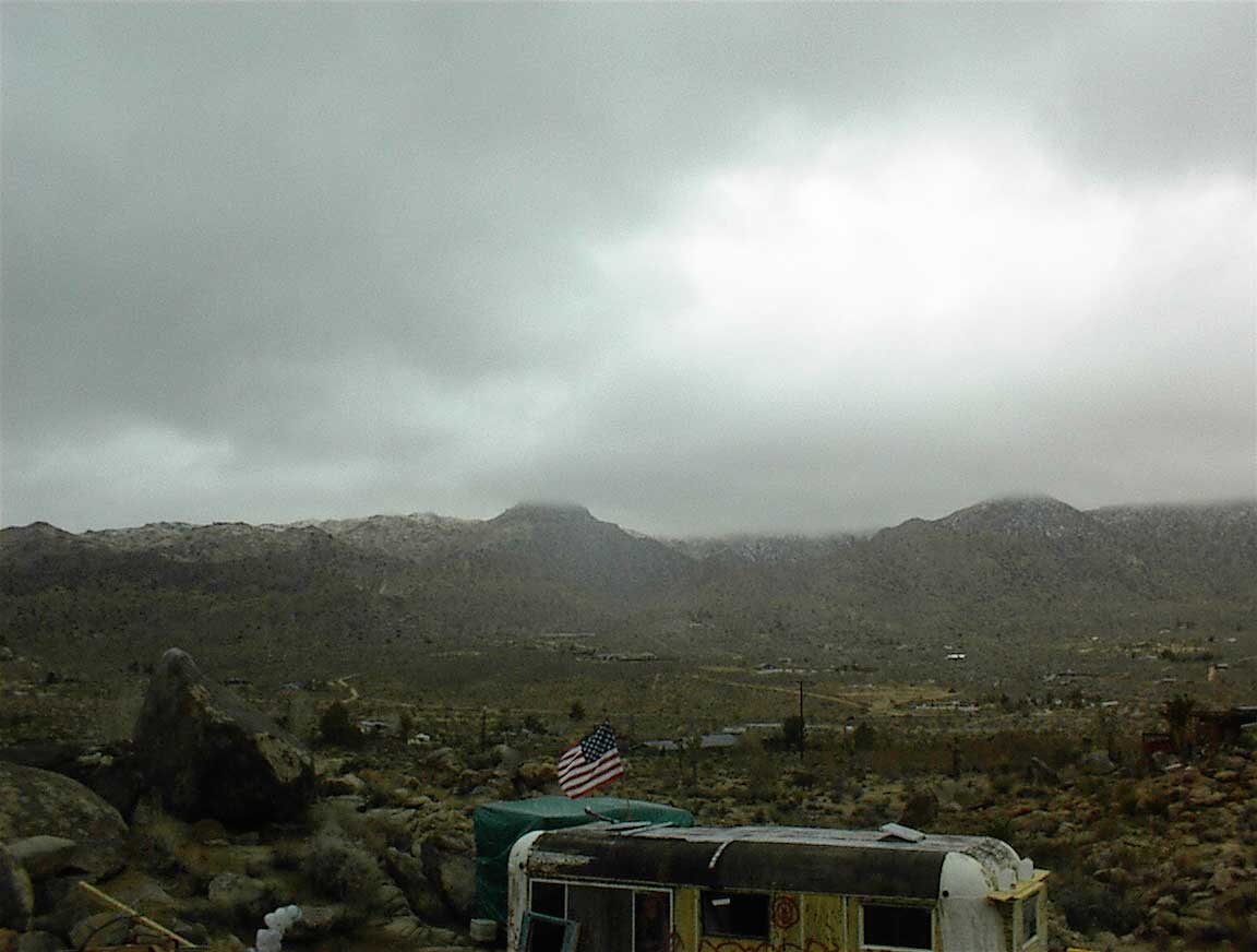 Overcast mountain range beyond this Joshua Tree valley in 2002