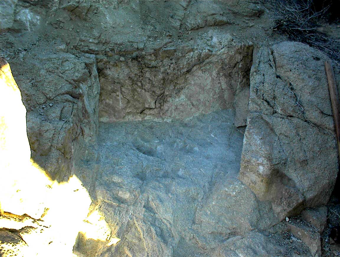 Cutting a level slot in the bedrock for placing the water tank stand.