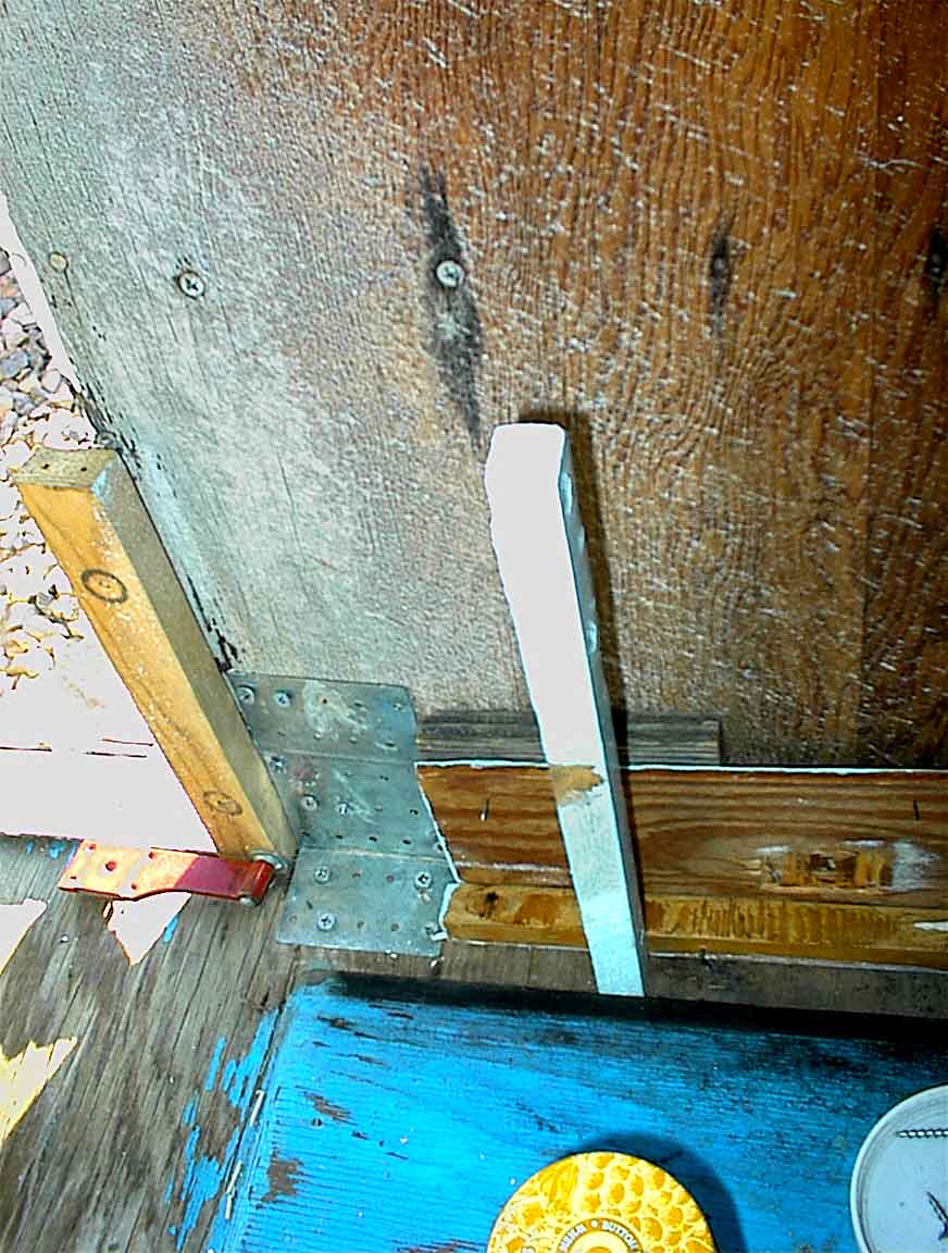 The door pocket wall of this Branstrator trailer is being glued, screwed and strapped tight