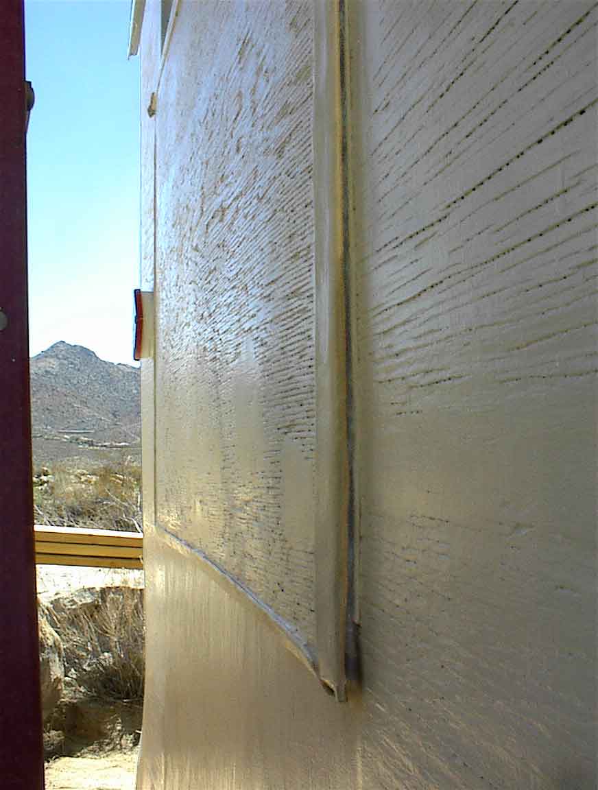 The rear door of this Branstrator trailer is shut tight but could be kicked out