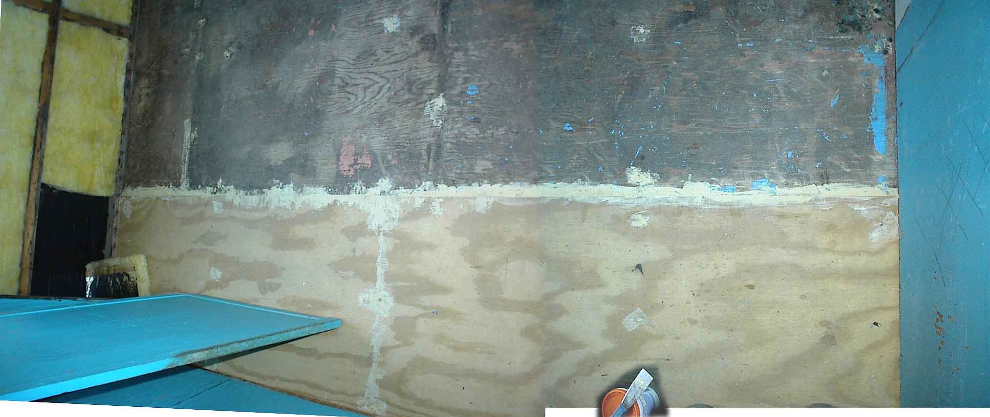 Filling the seams with wood dough inside the Branstrator trailer