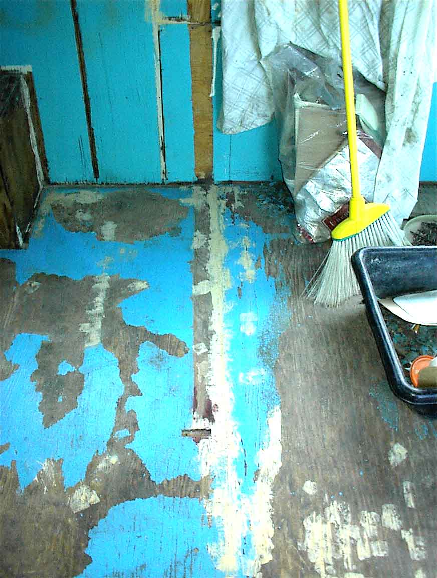 Hundreds of holes and cracks in the trailer floor were filled and sanded