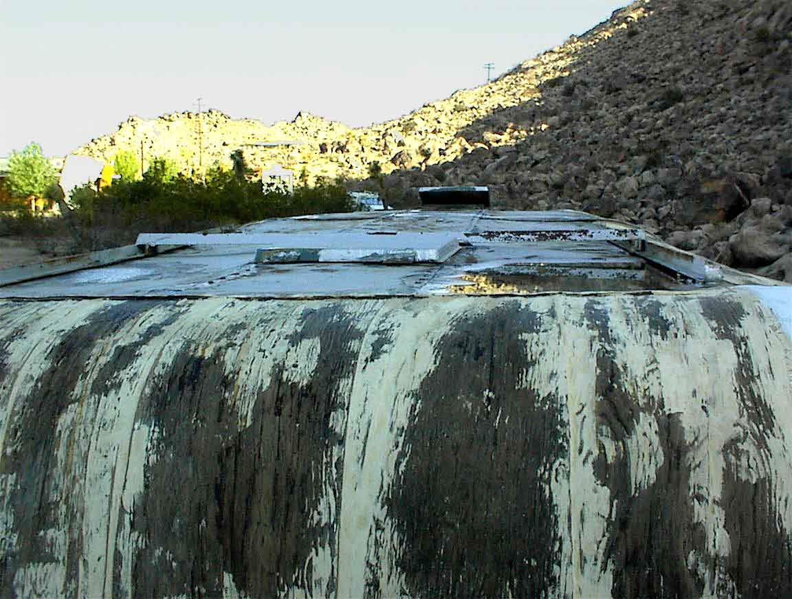 Gently sanding the cracks filled with wood dough in the Branstrator trailer roof