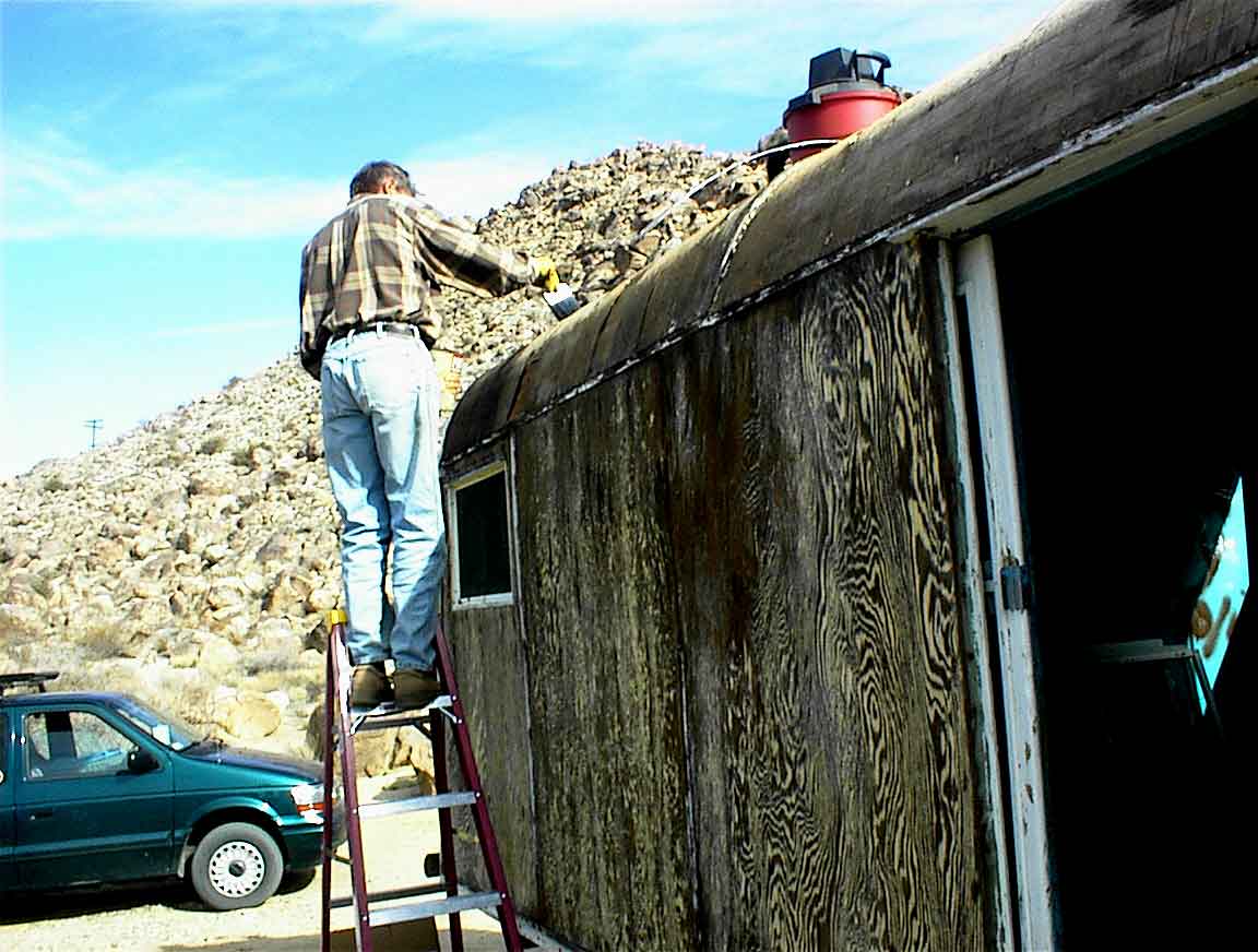 Semi-varnishing to seal the repairs on the Branstrator trailer roof