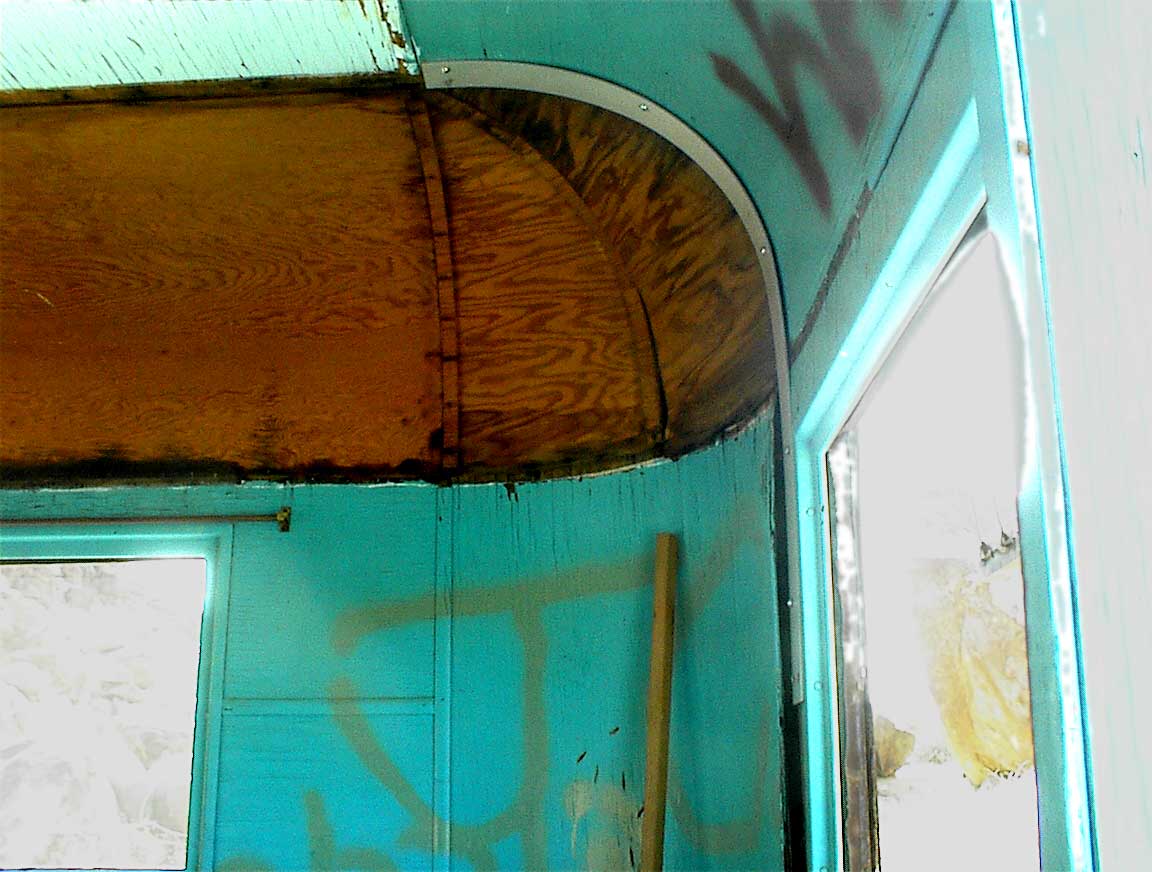 A pair of aluminum straps inside and out of the Branstrator trailer lock down a sprung corner