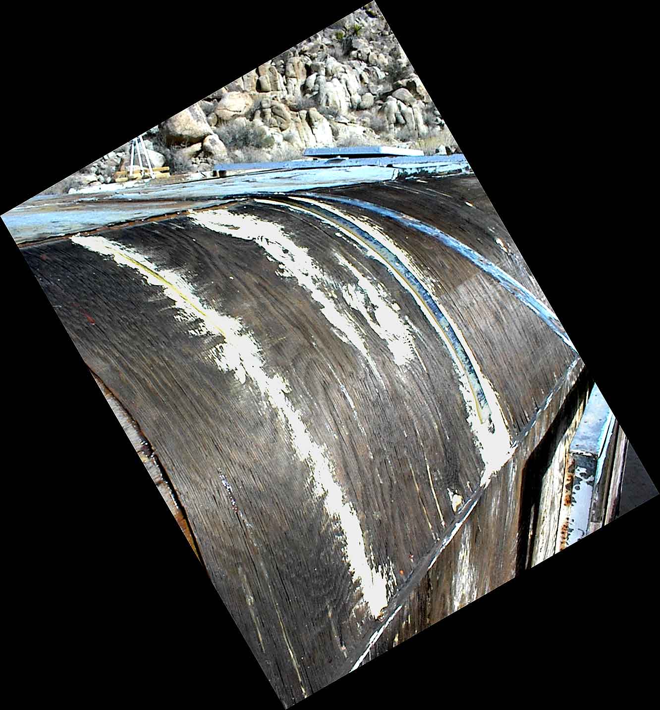 Cracks in the Branstrator trailer roof have been filled with wood dough