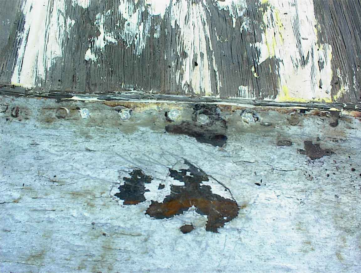 Most nails on the old Branstrator trailer tin roof are replaced by glue or silicone and screws