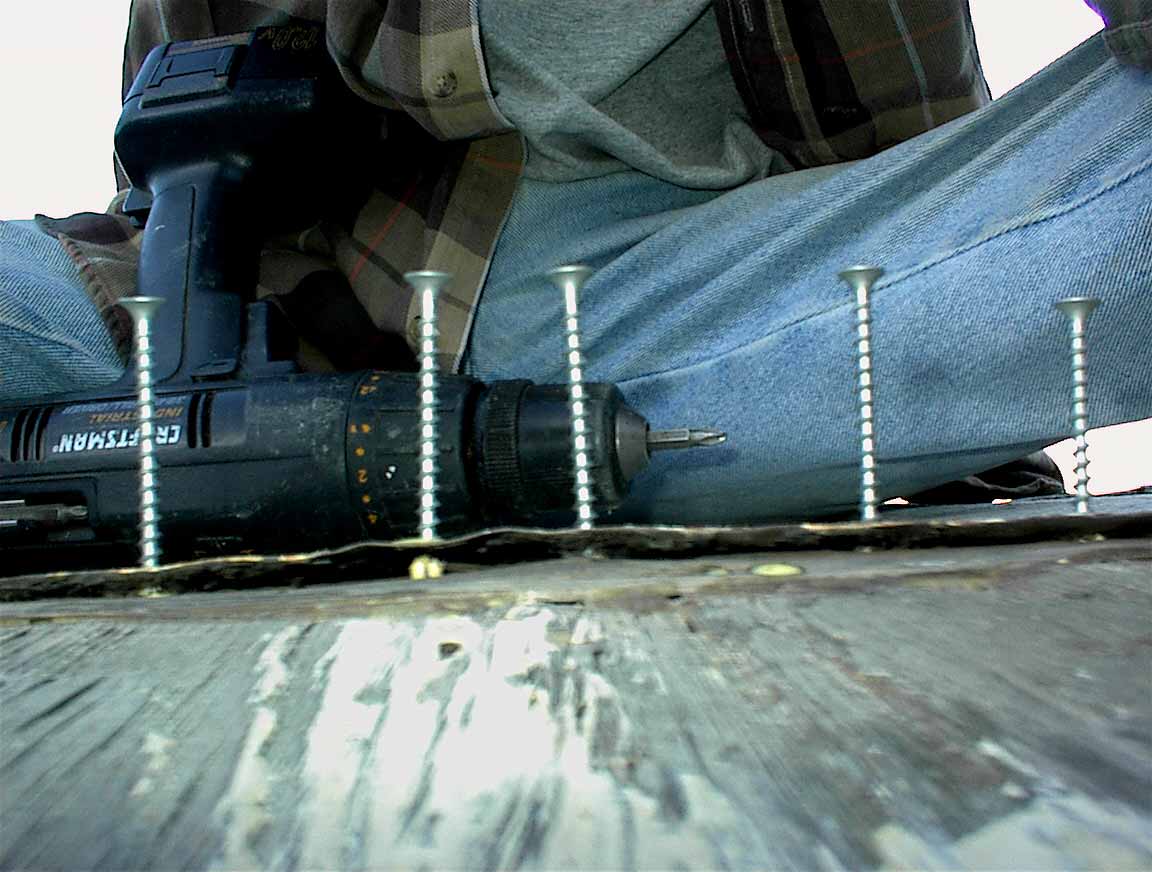 Glue and toothpicks fill most holes in the Branstrator trailer before inserting new screws