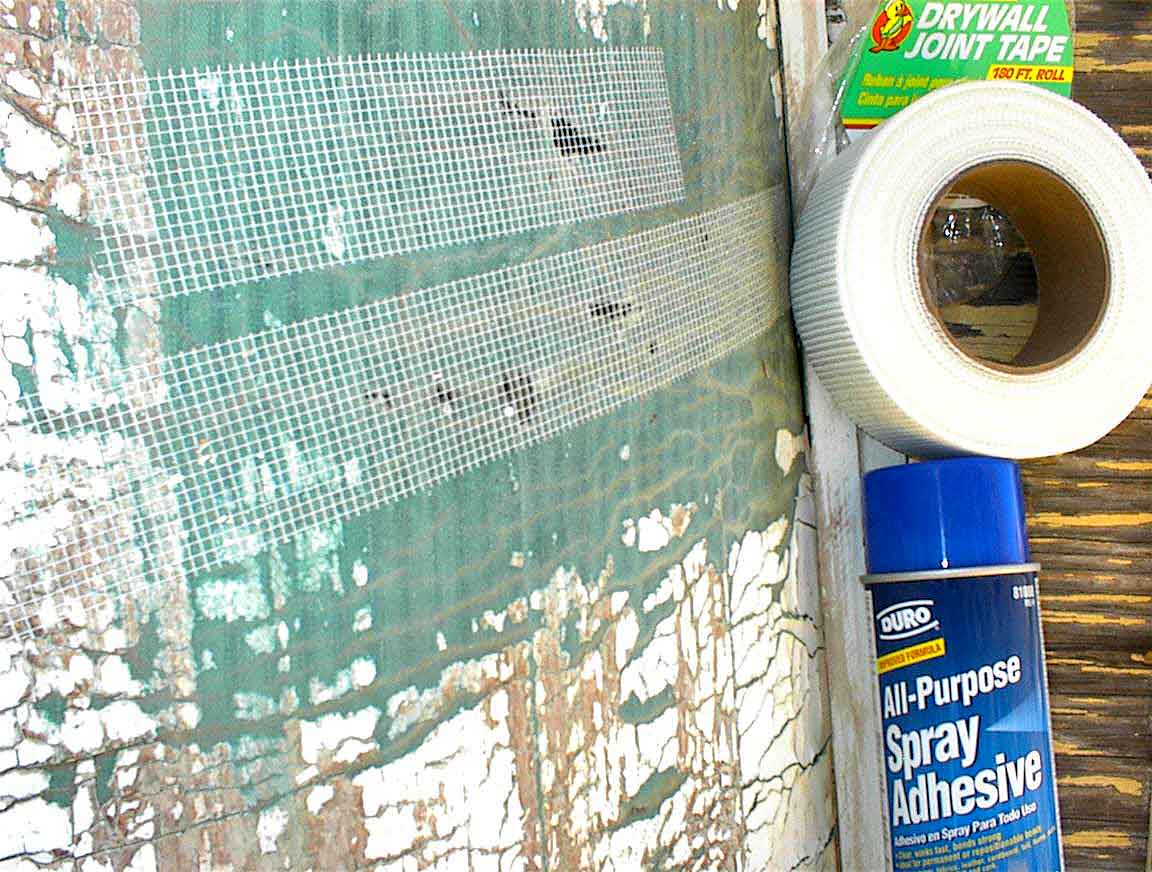 Experimenting with spray adhesive and fiberglass tape on a Branstrator trailer Canvas corner. It worked!