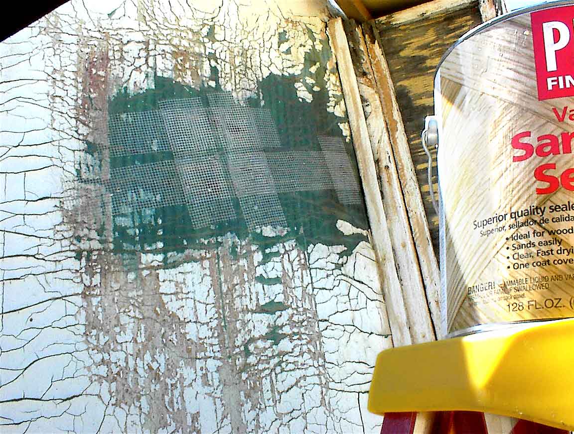 Experimented with a varnish to neutralize the glue on this Branstrator trailer canvas corner but found that unnecessary