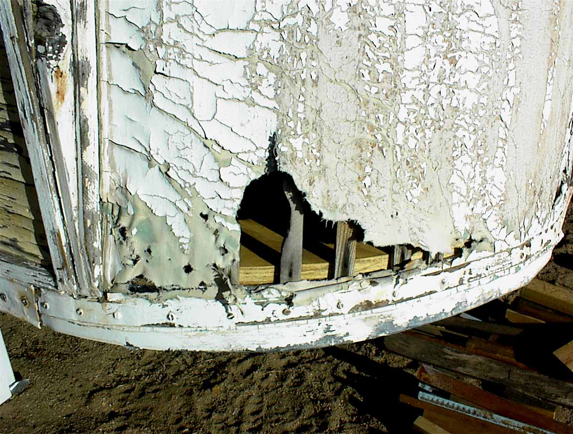 A big hole in a Branstrator trailer canvas corner in need of TLC