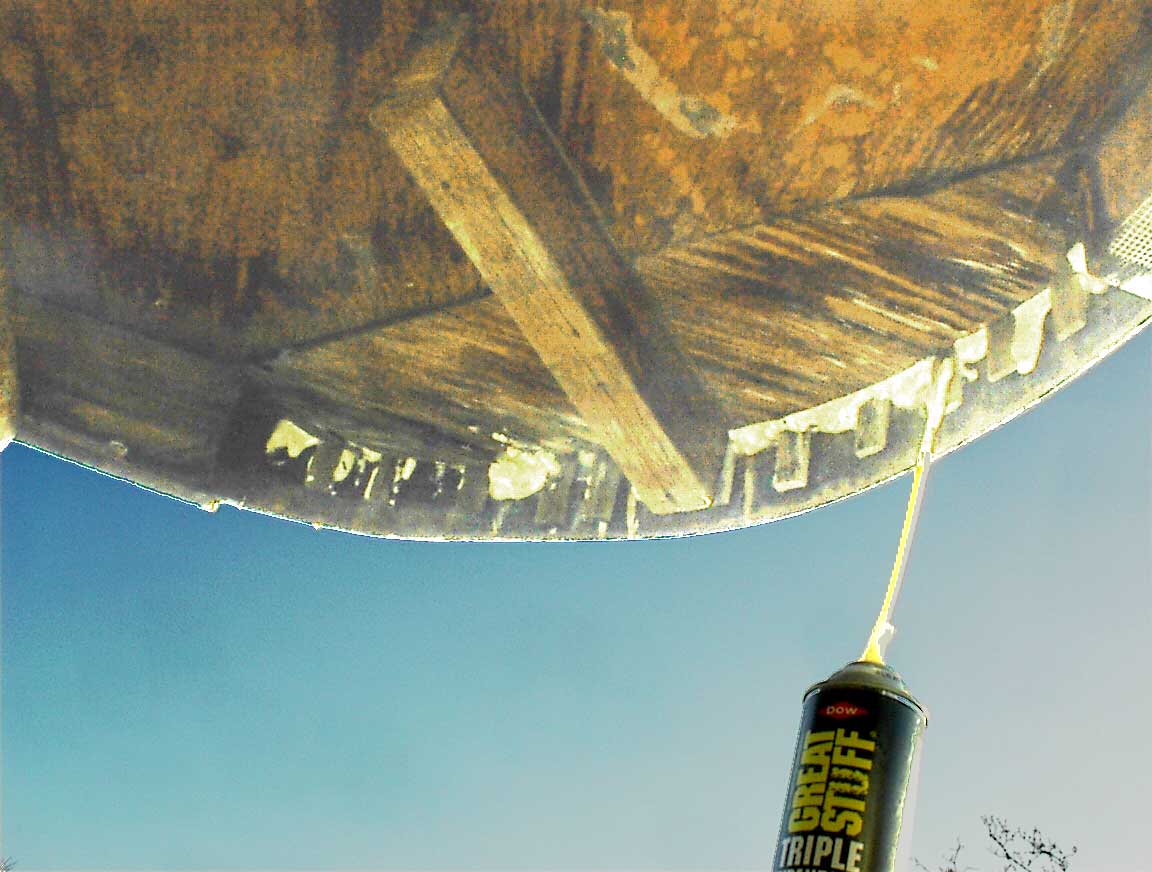 Foaming the gaps between the slats in the Branstrator trailer Canvas corners to lock them in place and keep out the bugs