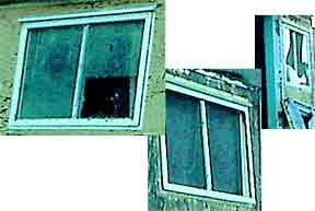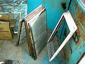 The 6 screen and window units prior to refurbishing, with broken glass removed.