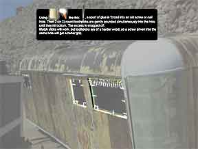 All old window screw and nail holes are plugged with glue and toothpicks.