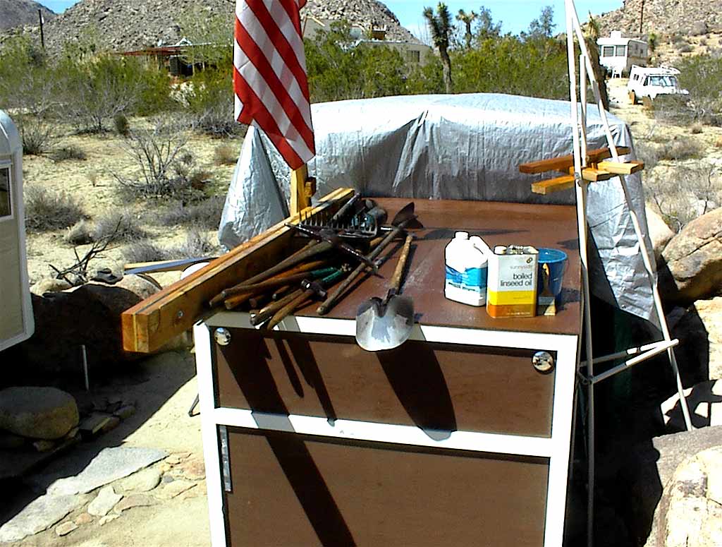 The sandwiched beam and tool handles have been treated with diluted linseed oil