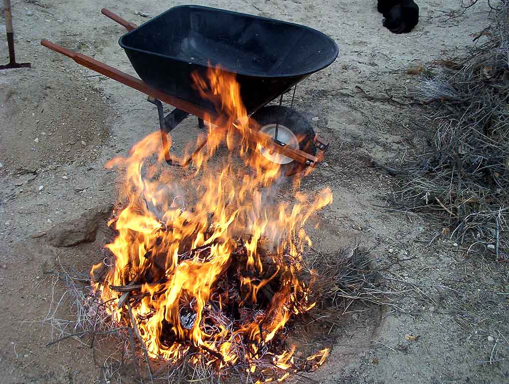 Keeping the fire small, with shovels and water nearby