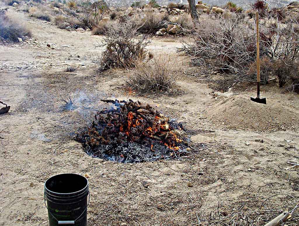 Keeping the fire small, with shovels and water handy
