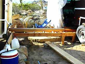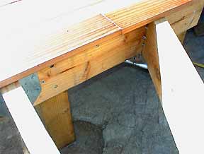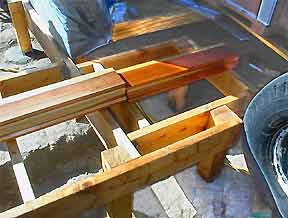 The curve is cut with a saber saw and the scrap fills in the gaps. It is sanded even with a belt sander. The edges are smoothed with a sanding block and the ends treated with 50/50 linseed oil/mineral spirits. |