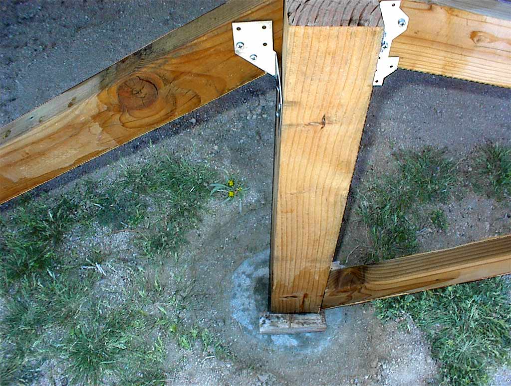 Post on aluminum foot around PVC pipe embedded in concrete footing