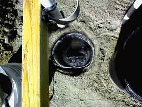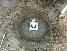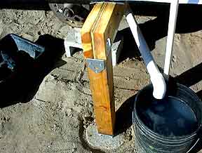 temporary 2x4 and misc. assure that the PVC anchor will be vertical. Later