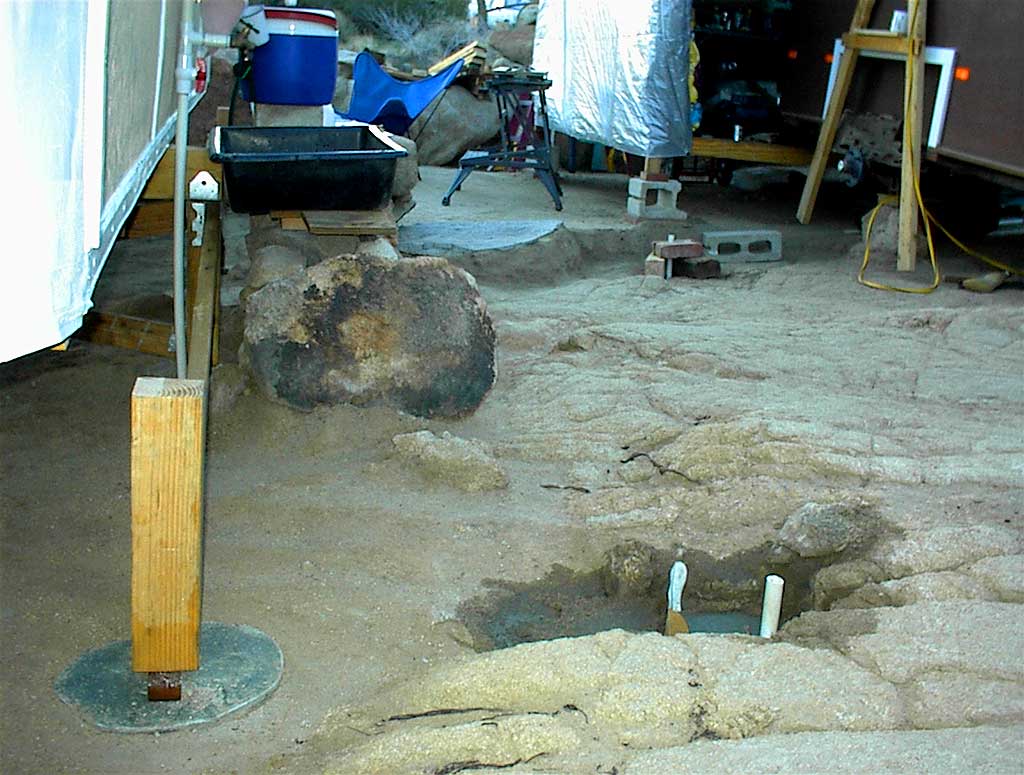 Post on aluminum foot around PVC pipe embedded in concrete footing