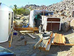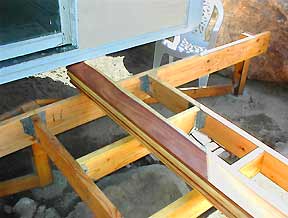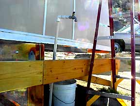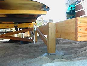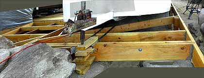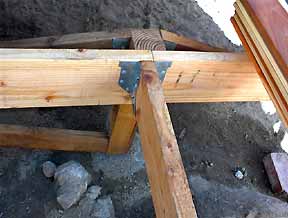 The forward posts are first tied together to lock in the side framing and to provide initial support for the front of the trailer, leaving the tongue area free to frame in below it. |