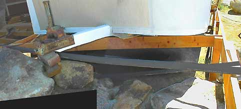 A heavy steel bracket will later be bolted front & center for the iron post of the tongue to rest upon. |