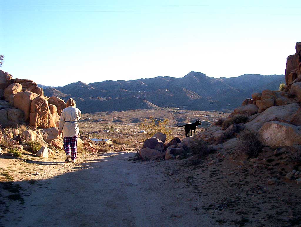 Eileen walking through the pass between our hill and the Quail Springs valley