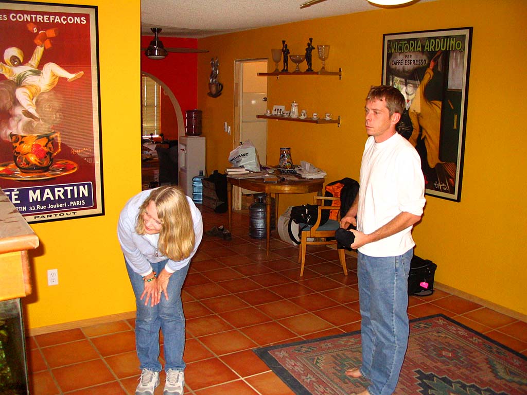 Eileen Blakeman and her son Jody Kerr inside his home in Tempe, AZ