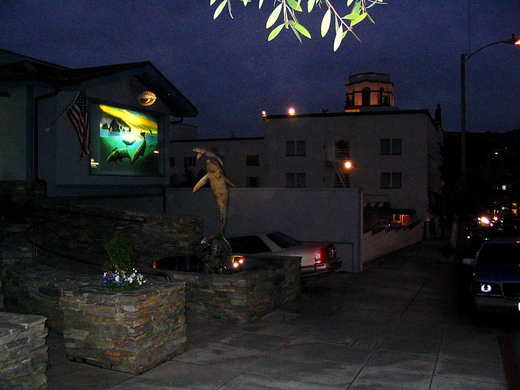 Dolphin sculptures by Wyland, and the Hotel Laguna