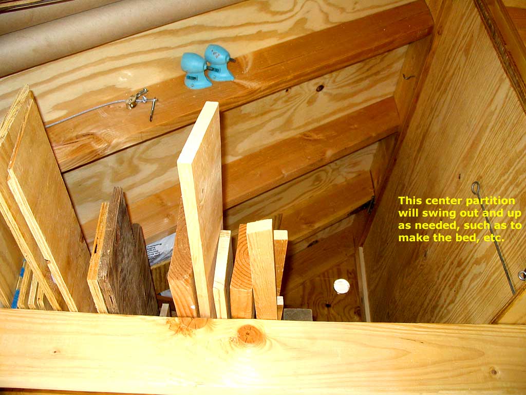 The dormer's wall inside our new shed/office will hinge out and up if needed