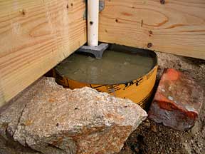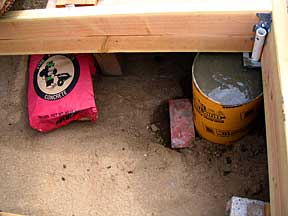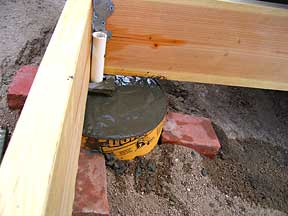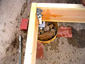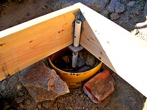 | Footing #2, NW corner | Well, that's where I wanted the darn thing, up in the shed | This is why we hang onto odds & ends |