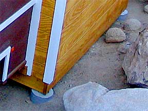 | Footing #1, SW corner |  | Shimming with nuts & washers to level the frame |  |