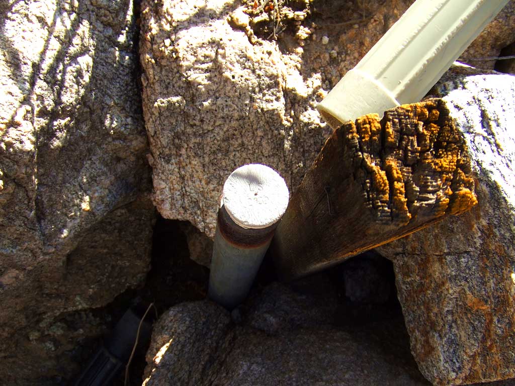 The southwest corner monument of our ten acre property is a rubber plug