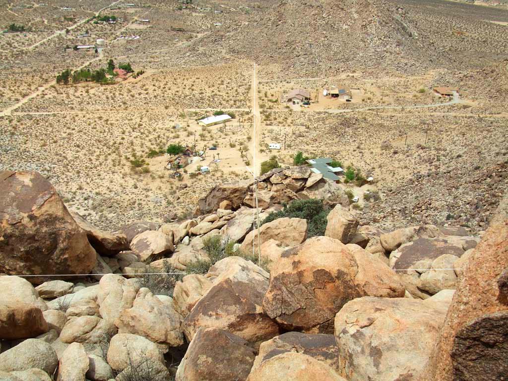 The pole at the nearly hidden southeast corner marker and a 2nd pole at the nearby ledge (visible from below)