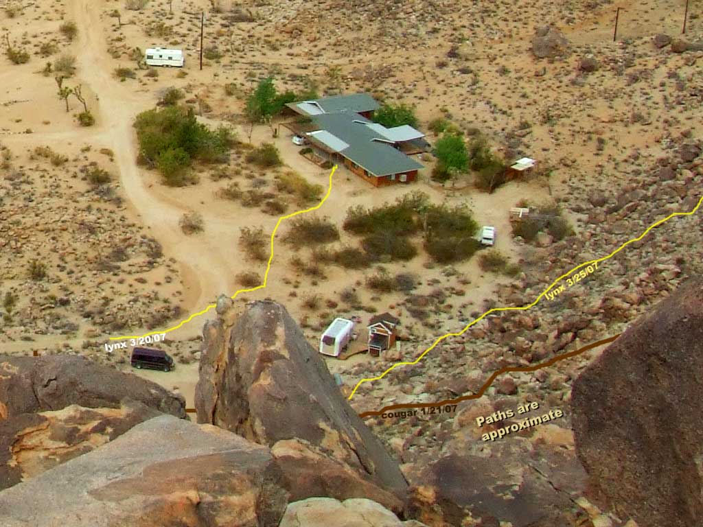 2006: Cougar & Desert Lynx paths crossing our hill south of Joshua Tree, CA