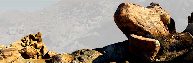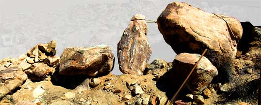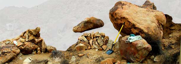 Boulder 3 is about to cross a pedestal of rock waiting to guide it into position. |