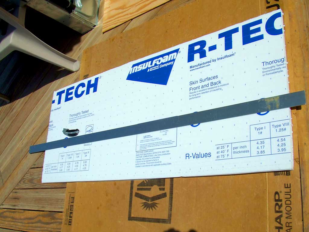Slicing this 1" foam board 3/4 deep, roughly 1" apart, so that it will fit into a curve.