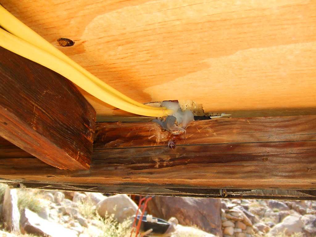 Running lamp and outlet wires up into the recess at the rear of the trailer
